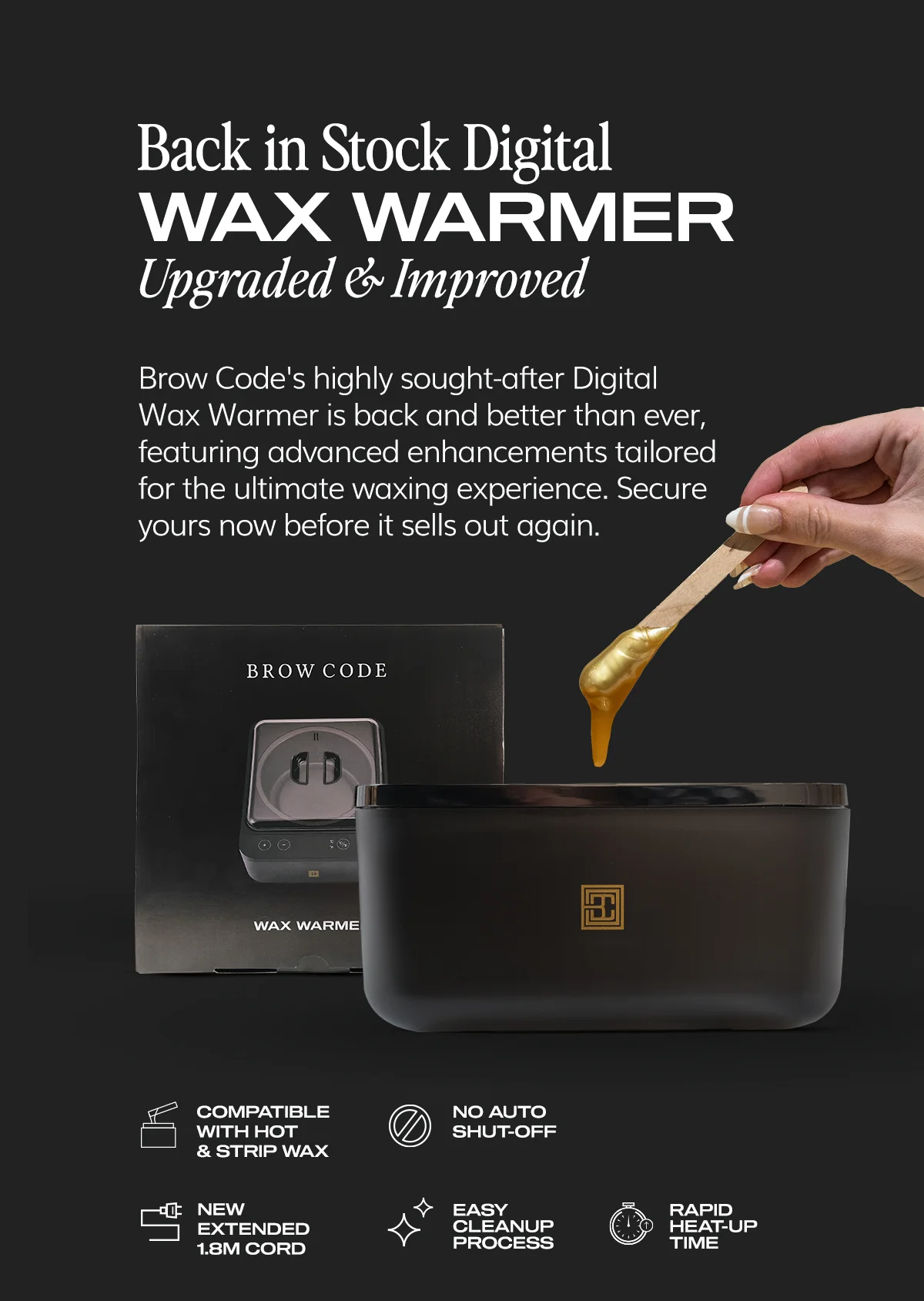 Brow Code's highly sought after Digital Wax Warmer is back and better than ever, featuring advanced enhancements tailored for the ultimate waxing experience.